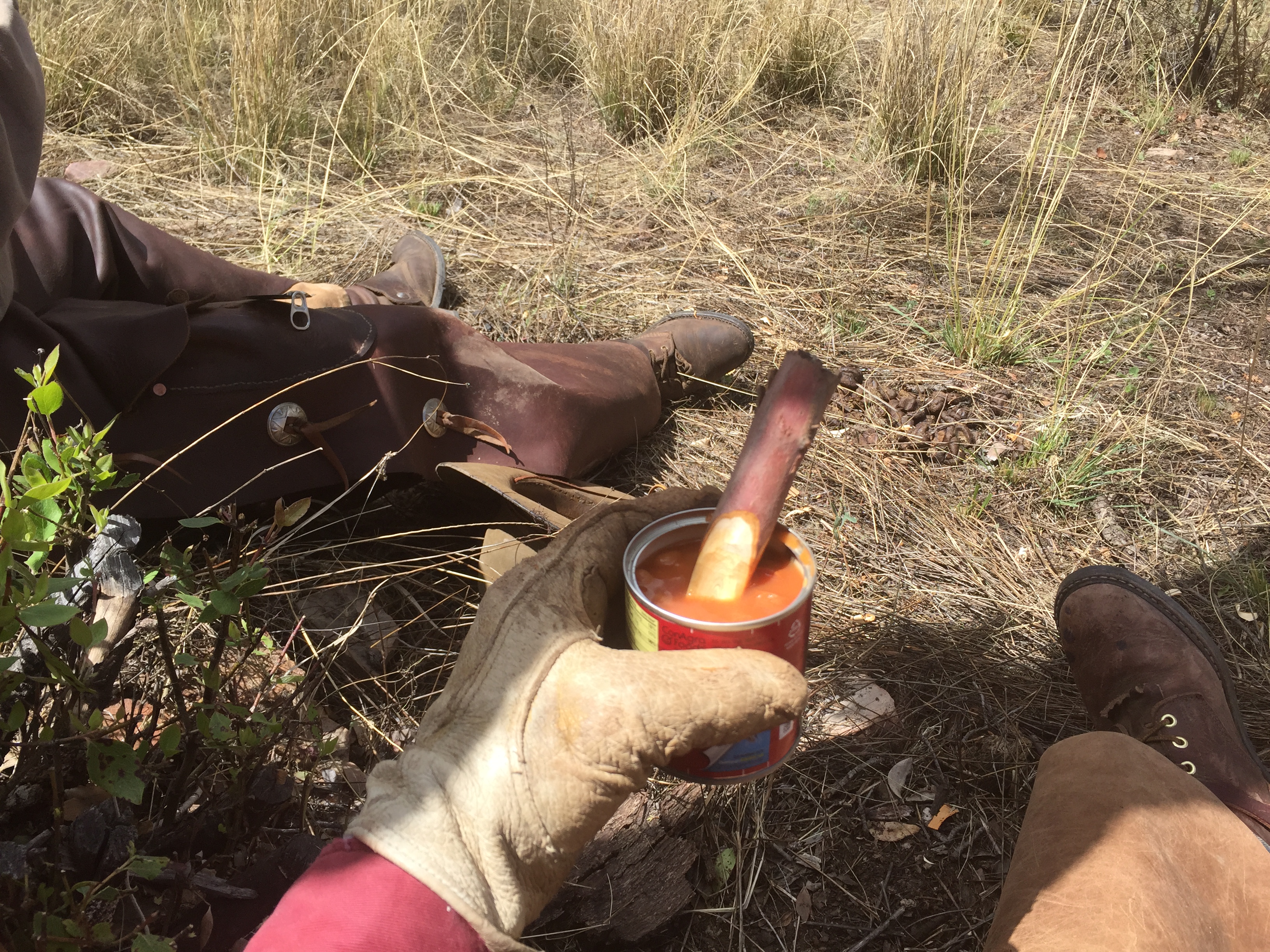 Eating beans with my homemade wooden spoon, in the very best of the Henrie tradition