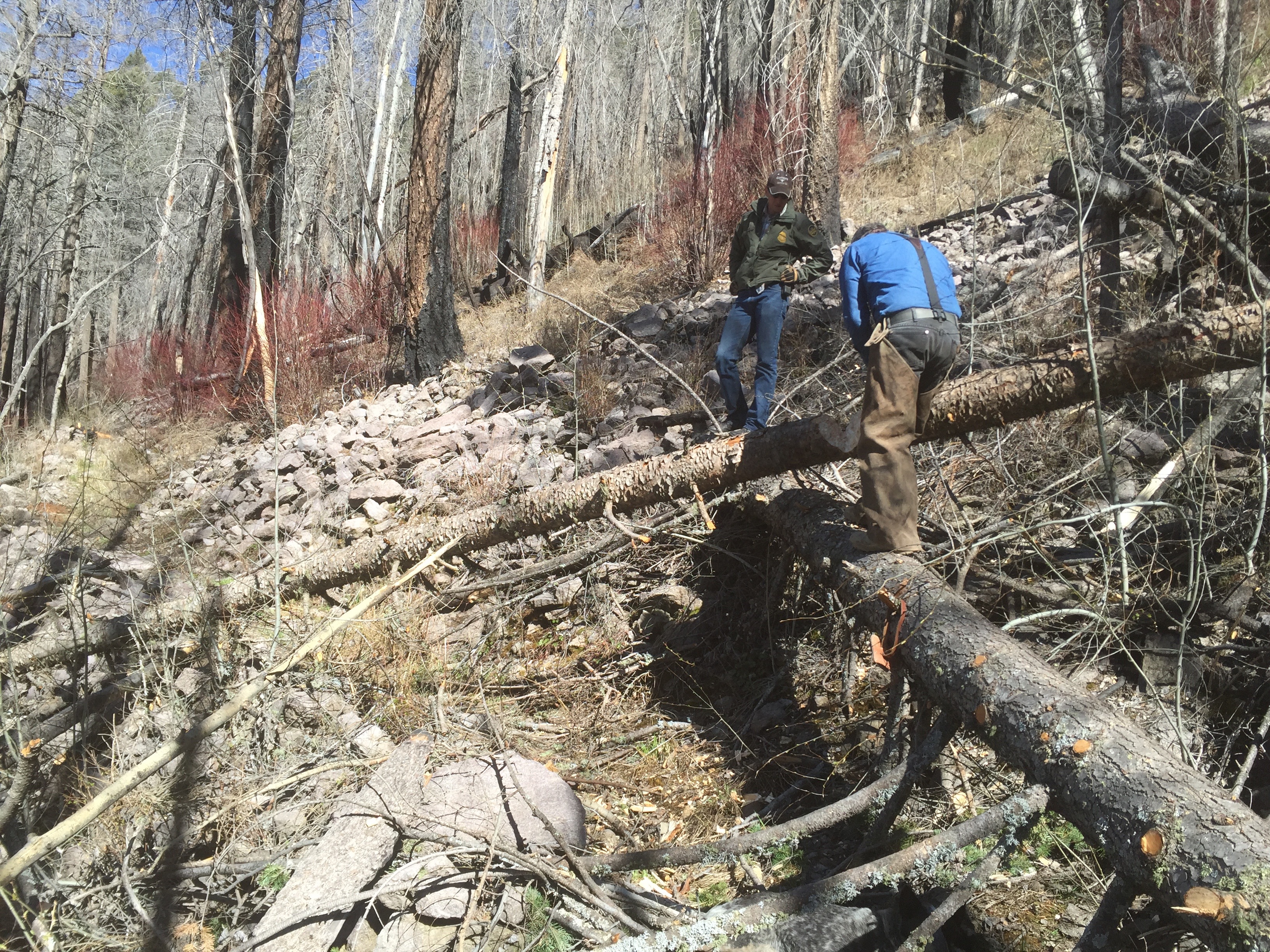 Clearing trail on the north side of Monte Vista Peak.