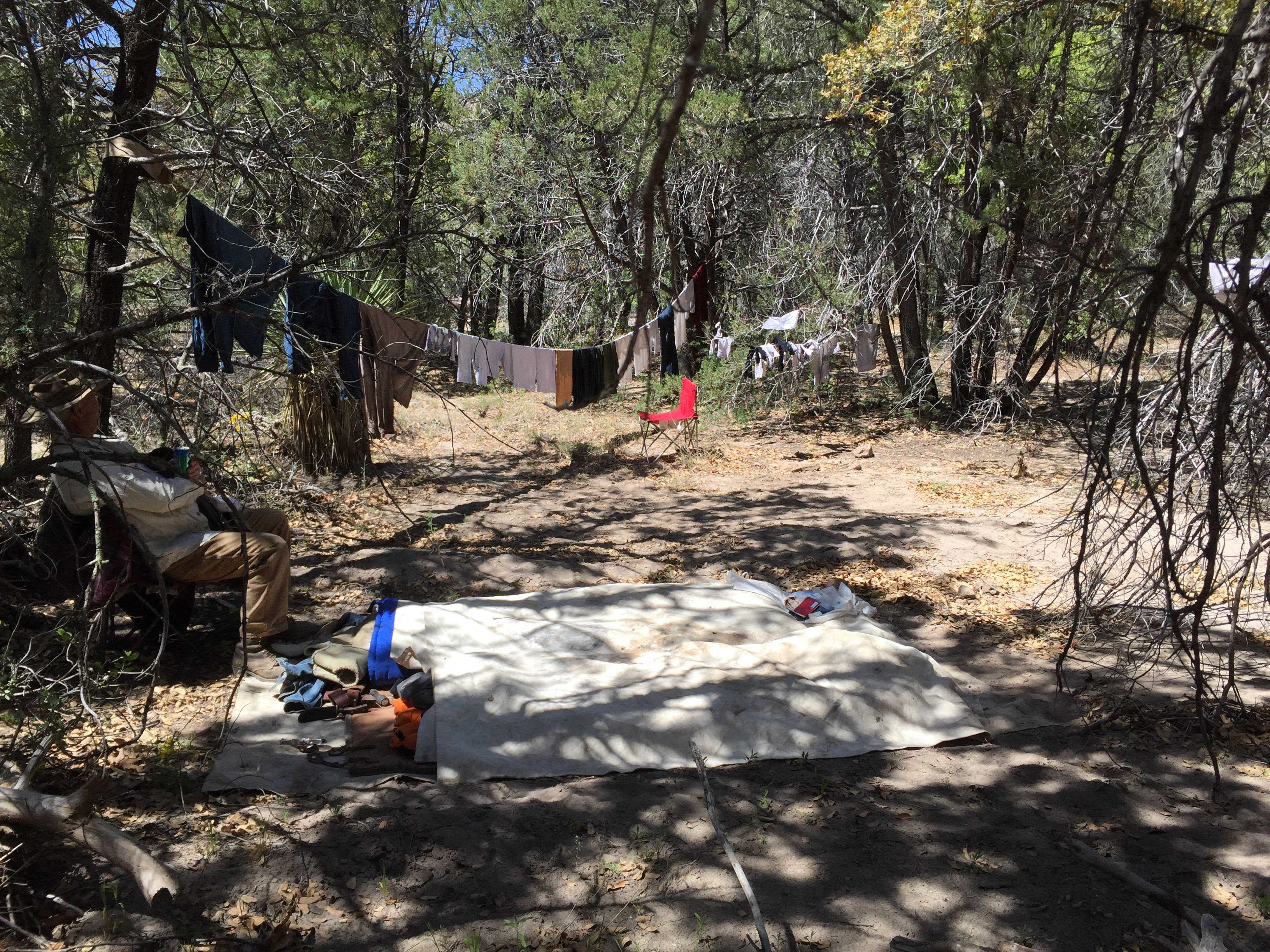Camp in Whitetail Canyon, Chiricahua Mountains. Sunday - rest day and laundry day.